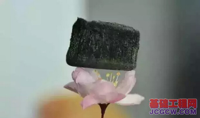 放在樱花上的气凝胶碳海绵,它比氦气还轻,却可以吸收自重250-900倍的油。