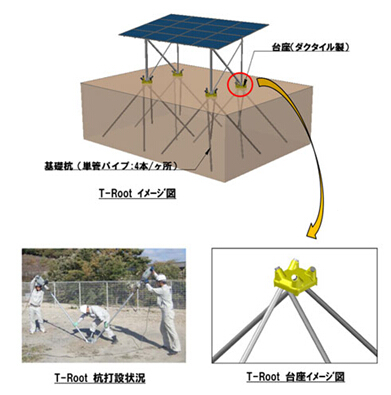 核心提示: 大成建设5月27日宣布,与Lasco Japan(横滨市)和VSL Japan(东京都新宿区)共同开发出了适用于光伏电站的简易斜桩基础T-Root。能