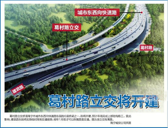 南宁葛村路立交桥即将开建 建政路东段将封路