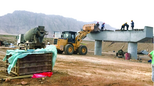 8个多小时的长途跋涉,太阳即将落山时记者到达了目的地,一下车,干燥的天气、五六级大风向人们吹来,记者沿着施工便道一路前行,看到施工人员正在工地上工作,路基、涵洞、桥梁桩基等初具成型,在一处路基的施工现场,3台翻斗车同时卸料,平地机、压路机、装载机、洒水车交叉作业,整个施工流程衔接有序。