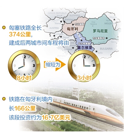 布达佩斯—贝尔格莱德铁路目前为单线,全长374公里。铁路的现代化改造将使用中国资金。这条铁路改造后将成为复线并实现全程电气化,时速将达到每小时160公里,火车在这两座城市之间的运行时间将由目前的8小时缩短为3小时。