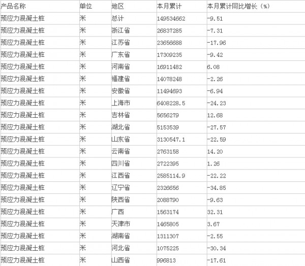 核心提示:中商产业研究院数据显示:2015年1-6月生产预应力混凝土桩1.5亿米,同比下降9.51%。