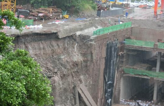 核心提示:图为发生基坑支护垮塌的施工现场图为雨水不断冲刷墙基,不断有泥土流向基坑内 记者8月17日接市民爆料称,当日上午7时许,重庆
