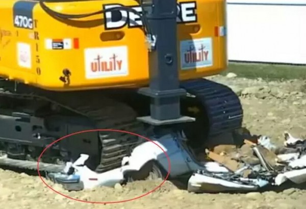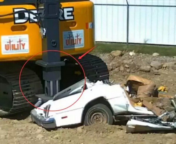 约翰迪尔47吨旋挖钻如何给汽车“松筋”?看完才知道什么叫粉身碎骨!