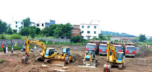 开工仪式后,机器开始动土施工
