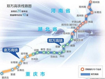 郑州至襄阳段建设工期4年,预计2019年建成,襄阳至万州段建设工期6年,设计行车时速350公里,初期运营时速300公里,设计运输能力可达每年6000万人。