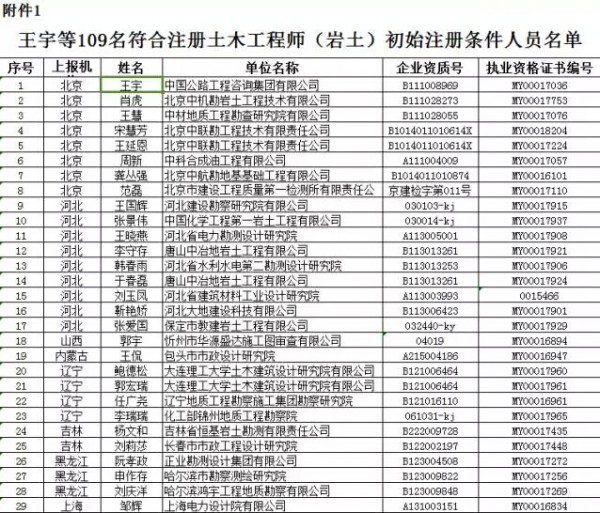 根据《勘察设计注册工程师管理规定》(建设部令第137号)和《关于建设部机关直接实施的行政许可事项有关规定和内容的公告》(建设部公告第278号)规定,经审核,王宇等109名申报注册土木工程师(岩土)初始注册人员、毕文萍等107名申报一级注册结构工程师初始注册人员、滕世兴等226名申报注册公用设备工程师初始注册人员、孙国富等180名申报注册电气工程师初始注册人员、游鑫玲等15名申报注册化工工程师初始注册人员符合注册条件,准予注册。