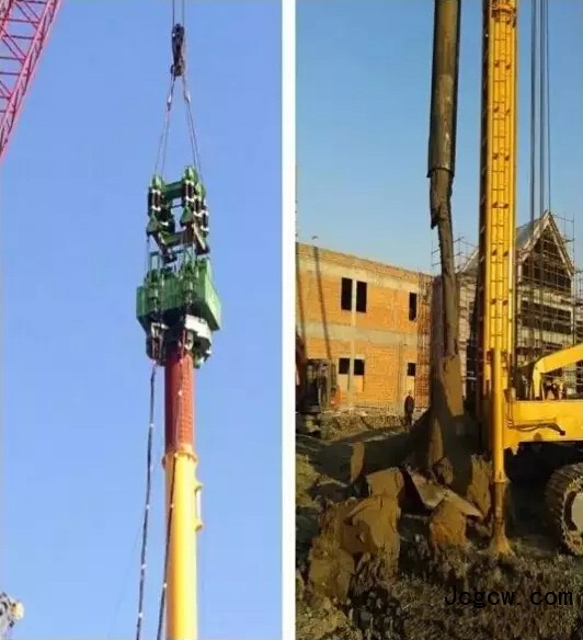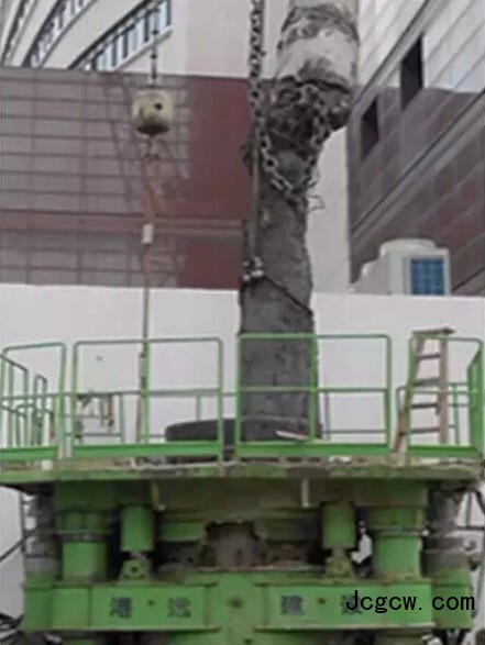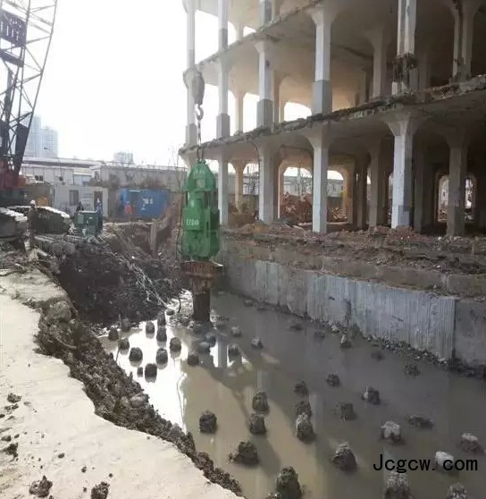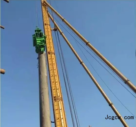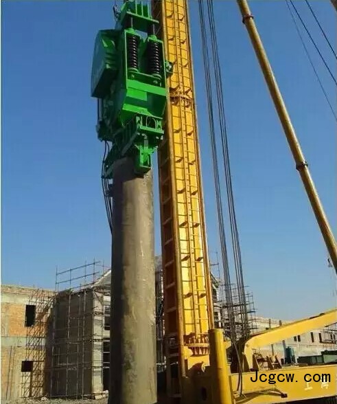对易产生桩径不均匀的钻孔灌注桩有独到作用,即对施工中孔壁有坍塌或大肚子灌注桩来说,十分适用。但对拔除其他预制方桩、沉管灌注桩、预应力管桩,该设备价格过高、施工效率较低、拔桩费用高。在拔桩过程中,设备会对地面产生数百吨反力,如地基基础不牢固,对施工安全和质量都有很大的影响,因此,在拔桩区域的场地,需要全部采用钢筋砼硬化。