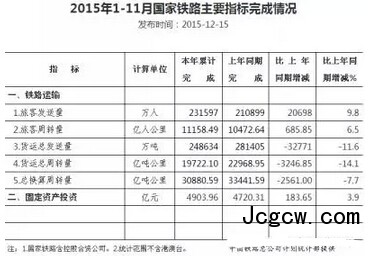 核心提示: 距2015年结束还有不到半个月,中国铁路总公司(下称中铁总)投资完成情况不甚乐观,据中铁总最新公布的数据显示,2015年1-11