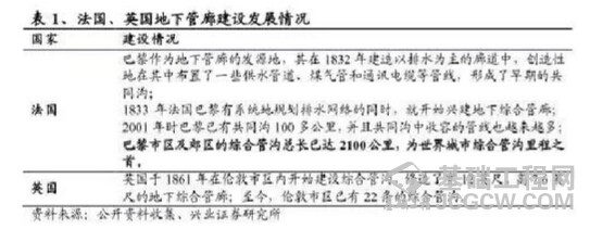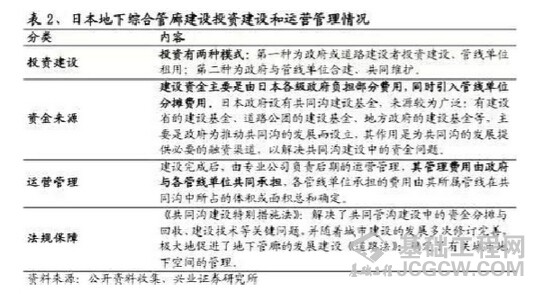 日本综合管沟建设开始于1926年,目前已发展成为世界上综合管沟建设规模较大、最先进的国家之一,其目前在综合管沟的投资、规划设计、建设施工、后期管理等方面已形成较为成熟完善的系统。成东京都的中心城区,已规划建成200多公里的共同沟,成为世界范围共同沟建设长度最长的城市。