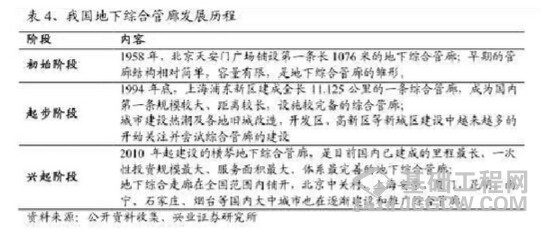 近期国务院常务会议提出将地下综合管廊作为国家重点支持的民生工程,未来地下管廊建设将成为财政支持的重要方向。地下综合管廊建设是中长期的城市基础设施建设和运营模式,需要大量资金支持,考虑到地下管廊工程较大规模的建设和投资量,