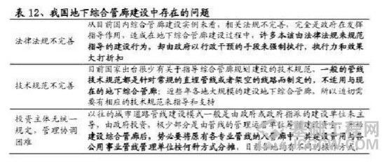 我们认为管廊投资除了对公司实质性影响有限以外,目前我国管廊建设法律法规不完善、技术规范不健全、投融资和运营模式不明确等问题也制约管廊建设快速发展,具体问题如下所示: