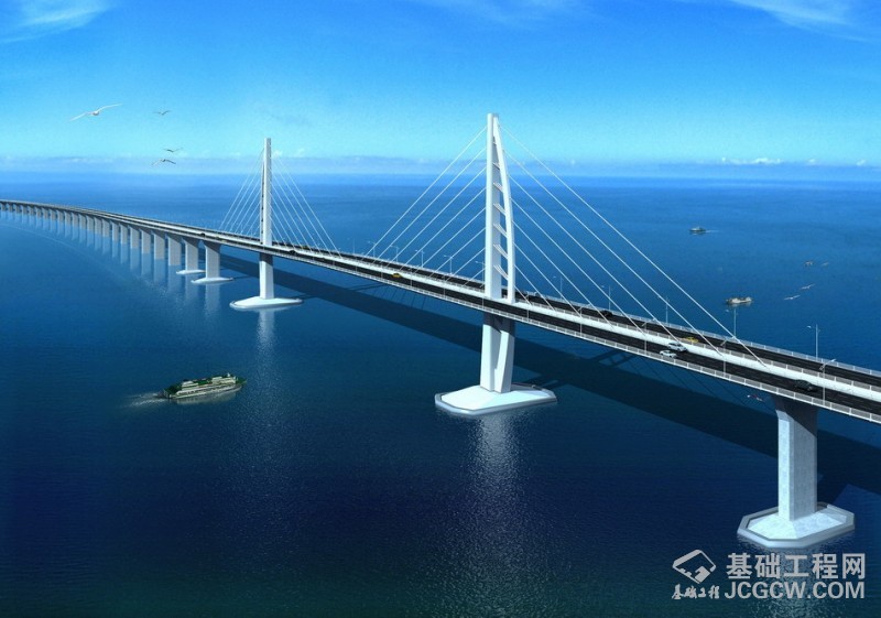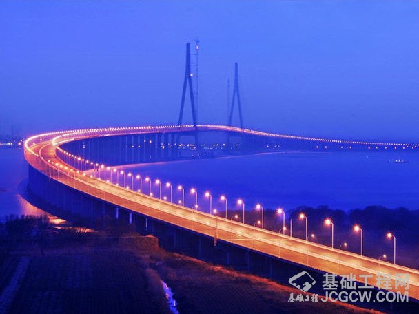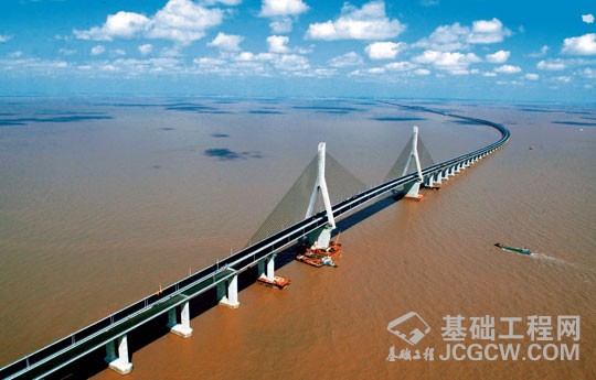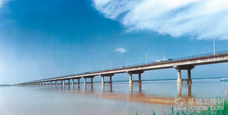 山东胶州湾海湾大桥见图15,也称青岛海湾大桥,跨胶州湾海域而建,将青岛市与近海岛屿黄岛相连接,是我国首座海上桥梁集群工程,全长36.48km,开创了又一世界记录。它采用了大直径钻孔灌注桩基础。