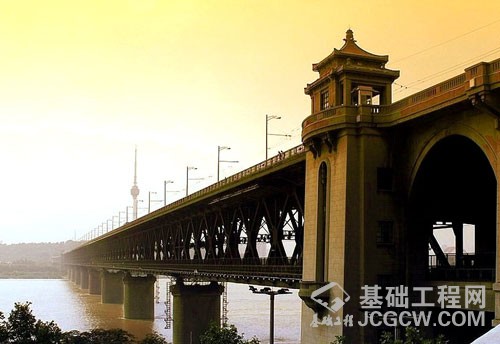 中华人民共和国成立后兴建的第一座大桥是1955年9月开工、1957年10月建成的武汉长江大桥,全长1670m,是我国历史上第一座横跨长江的公路铁路两用桥梁,它被称为“万里长江第一桥”。毛泽东主席曾为此桥题写“一桥飞架南北,天堑变通途”的碑文。它首次采用管柱基础。2013年5月3日,武汉长江大桥入选我国第七批全国重点文物保护单位名单。