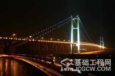 浙江台州椒江二桥见图14,全长8.09km,其中主桥长3702米。主跨为480m钻石型双塔双索面斜拉桥。采用Φ2.5m×139m(长)的钻孔灌注桩进入凝灰岩深度>3.5m,是我国迄今最长的钻孔灌注桩。