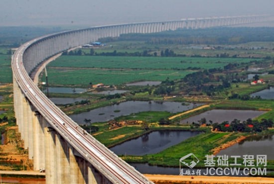 南京大胜关铁路桥,全长14.78km,是我国第一座高速铁路过江桥,也是世界最大可同时行车3种速度的大桥,即京沪高铁双线(300km/h),沪汉蓉普铁双线(200km/h)及南京城市地铁双线(80km/h),采用φ2.8m×112m(长)钻孔灌注桩,支承于泥岩土。见图5。