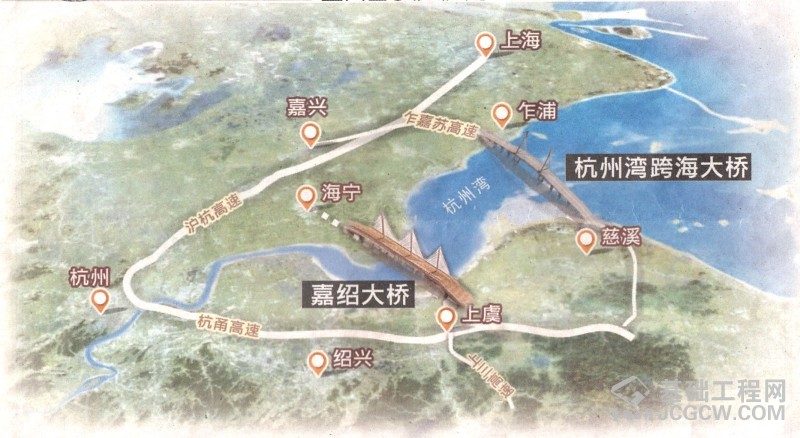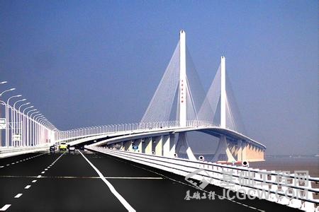 浙江嘉(兴)绍(兴)跨海大桥(见图13),是杭州湾上第二座大桥,全长10.1km;主桥长2680m,采用Φ3.8m×110m(长)的特大直径钻孔灌注桩,单桩混凝土灌注量达1300m3,施工用的钢管护筒重达40t。它是目前世界上最宽最长的多塔斜拉桥,主桥总宽达55.6m,设双向8车道。由连续的6塔独柱与跨斜拉桥组成。大桥桥墩全部采用独立单桩设计。