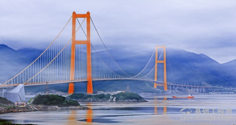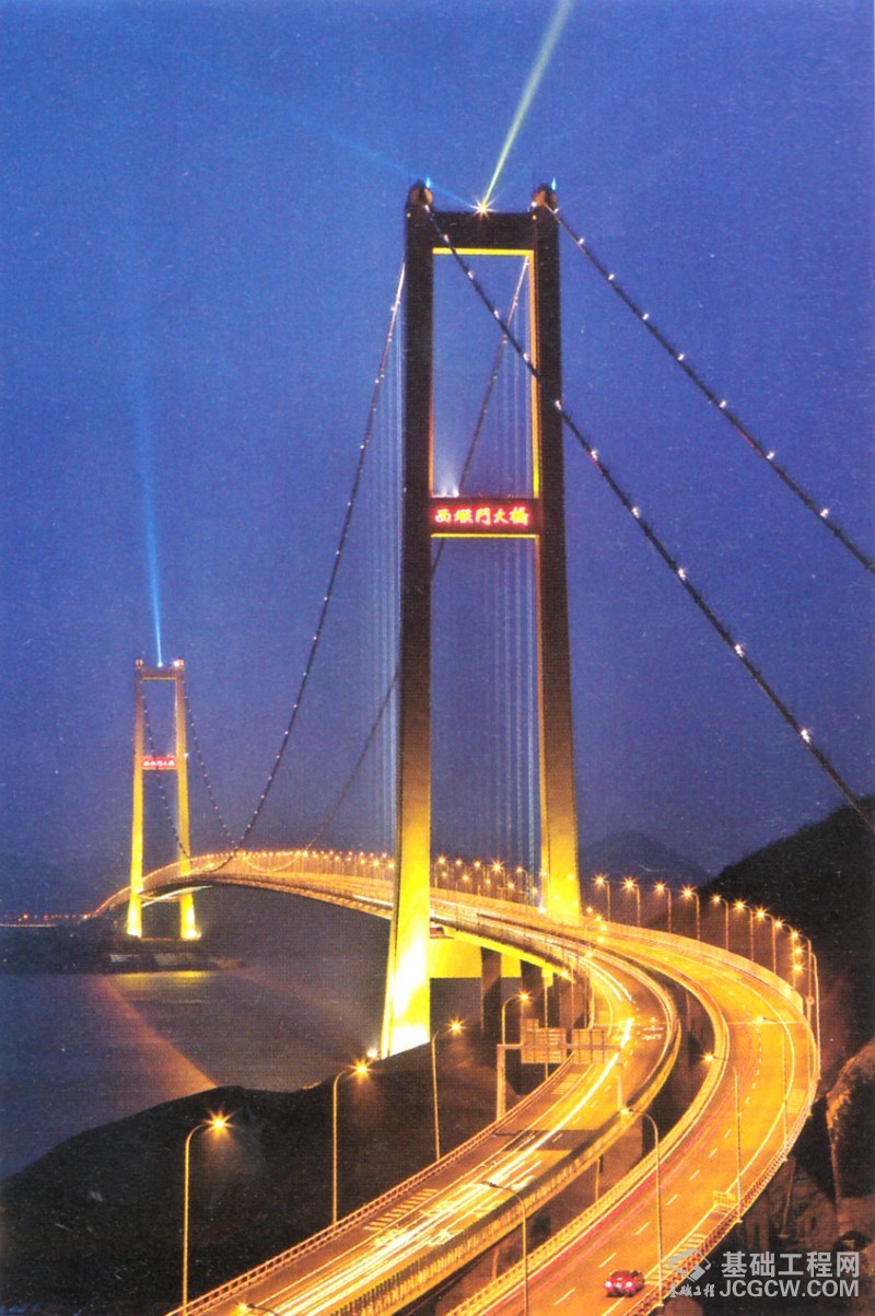 在十二五规划中列为“舟山群岛新经济区”的连岛大桥,全长50km,海域含西堠门大桥等5座大桥,构建了我国规模最大的桥路连接工程,全部采用大直径钻孔灌注桩。西堠门大桥主跨1650m,是世界第二、我国第一长悬索桥。参见图17(a)、(b)和(c)。