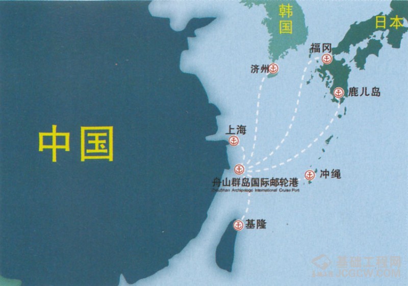 舟山拥有举世罕见的深水海岸线,适宜开发建港深水岸段54处,总长279.4km,可通航15万吨级航道13条。群岛环抱,水深浪小,是我国建设大型现代化深水港的理想港址。舟山地处我国东部黄金海岸线与长江黄金水道交汇处,背靠长三角经济腹地,是我国东部沿海和长江流域走向世界的重要海上门户。与韩国釜山、日本长崎、台湾地区高雄和香港特区等一线港口构成近500海里等距离扇形海运网络,参见图17(d)。