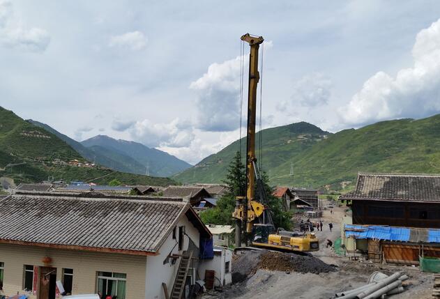 图为旋挖钻机在村庄中作业。