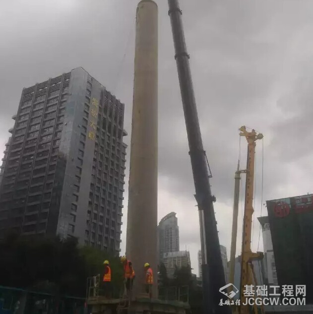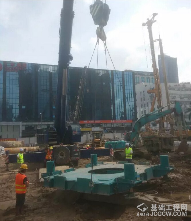 日前,深圳市宏业基基础工程有限公司使用盾安重工制造的DTR2005H全套管全回转钻机在万科深圳滨海置地大厦成功进行逆作法垂直插入钢立柱施工。此次插入的钢立柱直径达到1.6米,长度27米,重达34吨,要求垂直度1/1000,宏业基基础工程有限公司精心策划,在徐州盾安重工、深圳万科的的大力协助配合下,安插成功,创造了国内逆作法垂直插入最大钢立柱纪录。