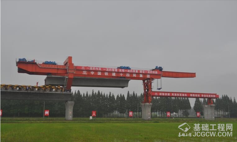 扬州市政协李秘书长一行到中铁十四局集团五公司连镇铁路项目部广陵制梁场参观现场架梁作业
