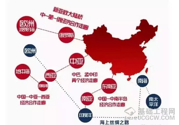 新亚欧大陆桥经济走廊、中蒙俄经济走廊、中国-中亚-西亚经济走廊、中国-中南半岛经济走廊、中巴经济走廊、孟中印缅经济走廊