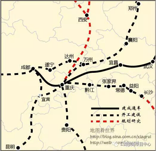 在铁路时代,重庆只是支线而已。但在高铁时代,沿江通道、厦渝通道、包海通道三个干线的交汇,而成为西南的高铁中心。