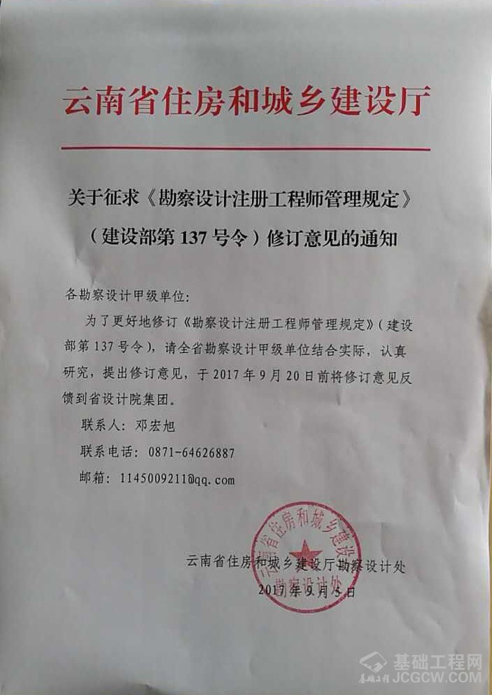 核心提示:云南:关于征求《勘察设计注册工程师管理规定》(建设部第137号令)修订意见的通知