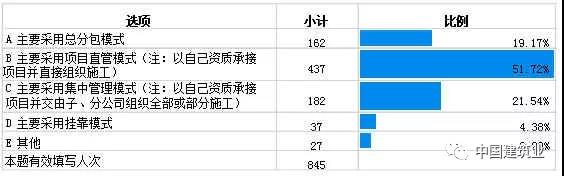 营改增是一项系统工程,不单涉及企业的财税部门,更牵涉到整个管理体系和管理方式的调整,对企业的组织结构和经营模式也会产生影响,倒逼企业提高精细化管理水平。从调研数据来看,新政实施后,一是企业组织结构发生变化,有30.2%的被访企业对子分公司进行了调整,55%的企业增设了内部管理机构,还有16%的被访企业成立了劳务、租赁等专业公司(见表7)。二是企业经营模式发生变化。营改增后,增值税销项税额和进项税额主体必须与中标主体保持一致。为适应这一要求,建筑业企业对其中标的工程项目采取项目直管模式和集中管理模式的,分别为51.72%、21.54%;挂靠模式明显减少,只占4.38%(见表8)。三是企业主动加强精细化管理。比如,为加强标前管理,规避源头风险,82%的企业让财税人员更多地参与合同评审;90%的企业更新了供应商纳税信息,加强分供商管理,规范招标采购工作;95.5%的企业对各类供应商要求合同流、发票流、资金流三流一致,选择供应商时都把提供增值税专用发票作为前提条件;64%的企业增加了集中采购。四是加强信息化系统应用,提高工作效率和精确度。五是加强财税管理,规避税务风险。有的企业制订了本企业《增值税发票管理暂行办法》。有的开展以合同结算为抓手,以资金支付为控制点,严格审核资金支付依据的管理实践,确保业务流、资金流、票据流、合同流四流合一。