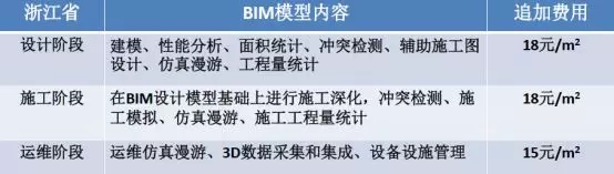目前,浙江省已计划出台标准,对采用BIM技术的项目,拟追加相应费用,具体如表1。