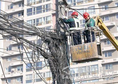 空中蜘蛛网:空中各种线缆密布交织成“蜘蛛网”。空中蜘蛛网易被超高车辆刮倒,造成路段附近大片居民区和单位的固定电话、宽带等出现中断,造成生活不便;裸露在在风雨中无保护,常年风吹日晒造成破损、老化、松动,引发交通安全等事故。