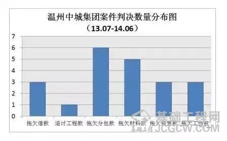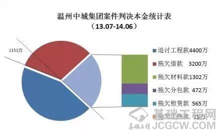 以上统计表表明:温州中城集团在近一年判决拖欠的工程成本(材料款、分包款、租赁款、工伤款)为2354万元,判决拖欠的金融机构借款为3200万元,合计判决拖欠款项5554万元。而该一年来判决可追讨工程款为4400万元,净现金流缺口1151万元。