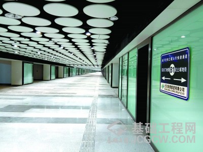 市政协委员日前就地下空间利用问题来到奥林匹克公园南区地下空间视察。从一幢已经建成的建筑物进入地下一层,扶梯下方是以白色为主的大通道空间,两侧是一间间“商铺”,视觉冲击绝对不输东方新天地之类的商业空间。从“商铺”间的通道向南,就进入了位于一层的地下公共空间快速通道,地面是白色基调的地砖,头顶布满了圆形的装饰,站在通道处望去,充满了韵律的美感。