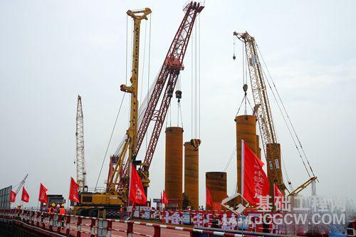 截至目前,该项目的4号主墩桩基施工已完成5根,正桥南段6-9号墩已完成桩基24根。