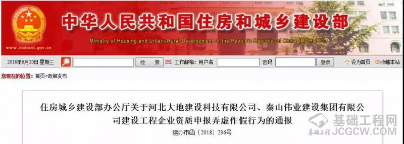 6月20日,住建部又通报批评了两家设工程企业在建资质申报中的弄虚作假行为,河北大地建设科技有限公司和秦山伟业建设集团有限公司在资质申报过程中存在弄虚作假行为。