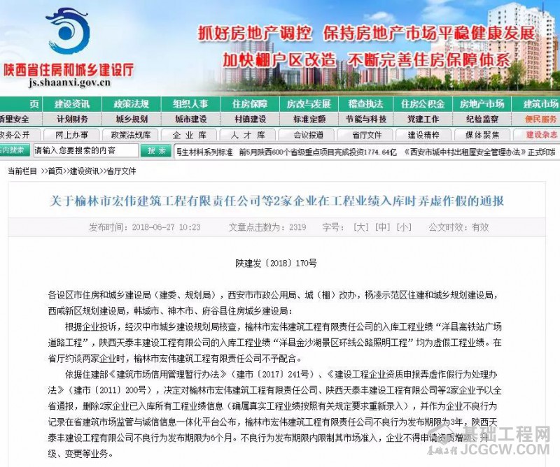 陕西住建厅通报2家企业工程业绩入库弄虚作假行为