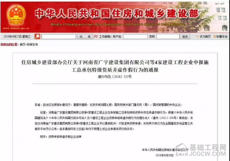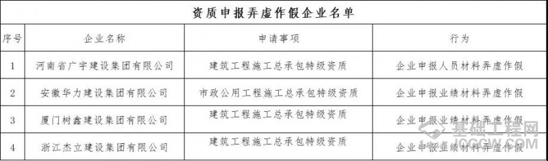 近日,住建部又通报批评了河南省广宇建设集团有限公司等4家建设工程企业申报施工总承包特级资质弄虚作假行为,不批准其资质申请,并将其不良行为在全国建筑市场监管公共服务平台予以公布,且自通报印发之日起1年内不受理上述企业申请该项行政许可。