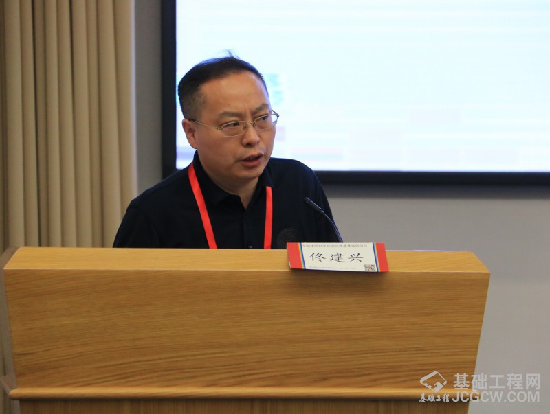 中国建筑科学研究院地基基础研究所教授级高工佟建兴作题为《某纠倾工程的方案设计与施工控制》的报告