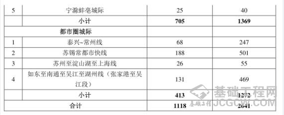 其中,区域城际轨道建设项目有5条线,分别为宁淮铁路(南京至淮安铁路)、宁宣铁路(南京至宣城铁路)、盐泰锡常宜铁路、宁扬宁马(禄口机场-扬州、禄口机场-马鞍山)铁路(镇江至马鞍山段)、宁滁蚌亳城际宁滁段。线路里程705公里,投资1369亿元;都市圈城际轨道建设项目有4条线,分别为泰兴~常州线、苏锡常都市快线,苏州~淀山湖~上海线(苏州至淀山湖段)、如东~南通~苏州~吴江~湖州线(南通至吴江段)。线路里程413公里,投资1272亿元。