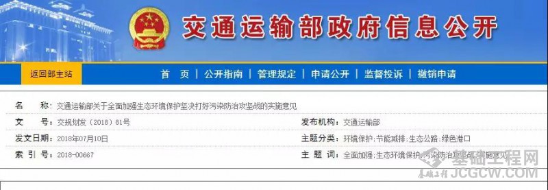 距离此次国务院印发《关于打赢蓝天保卫战三年行动计划》的通知,仅过去10天而已,交通运输部也发布一项重大文件《关于全面加强生态环境保护坚决打好污染防治攻坚战的实施意见》,进一步推进交通运输生态文明建设,加强生态环境保护,打好污染防治攻坚战。