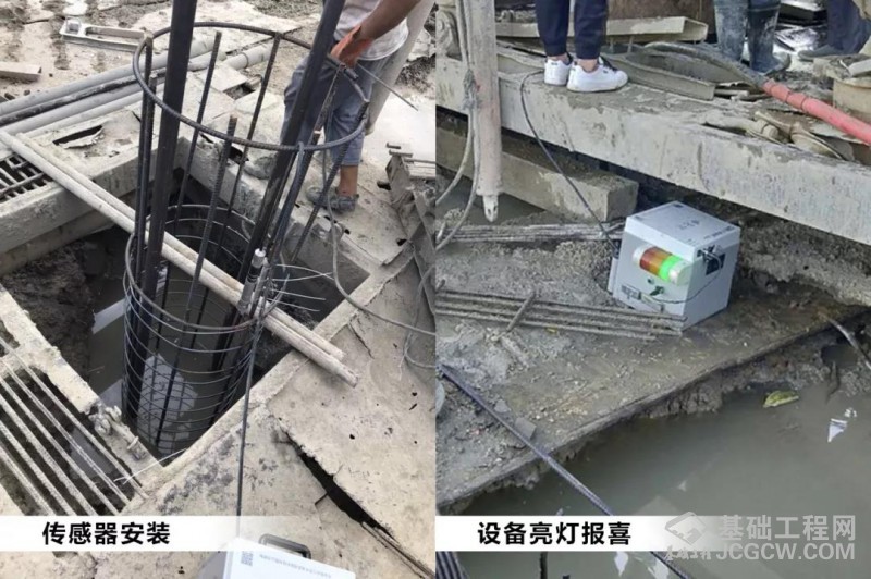 灌无忧由主机和传感器组成,通过将传感器固定在设计标高位置,实时监测混凝土灌注情况。当浮浆达到设计标高时,主机声光警示灯会立即亮黄灯发出报警提醒施工方放缓浇灌;当混凝土浇灌达到设计标高时,主机声光警示灯会立即亮绿灯报喜提醒施工方停止浇灌,从而达到实施监测的效果。