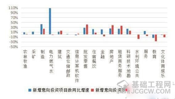 图3 各行业新增意向投资项目数、投资额同比增长情况