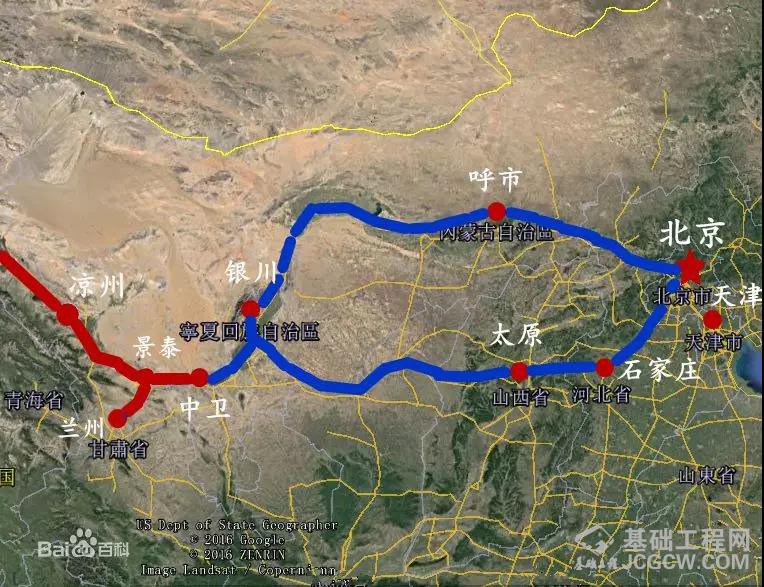 包头至银川铁路位于内蒙古、宁夏自治区境内,是规划的国家高速铁路网京呼银兰大通道的组成部分。包头-杭锦-乌海-石嘴山-银川。