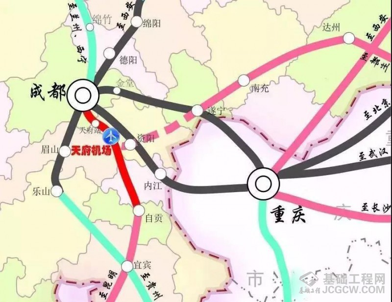 从成都东站出发,经天府站、天府国际机场、资阳、资中、威远,引入自贡东站。时速350公里/小时。