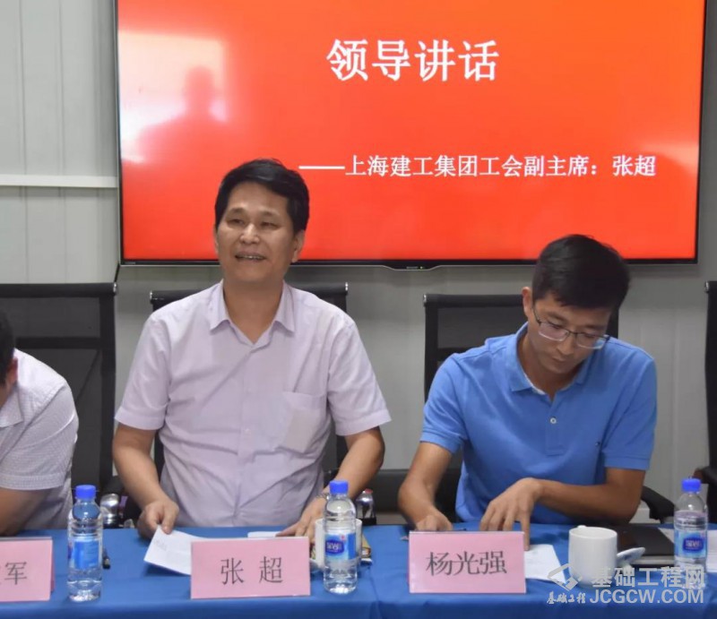 上海建工集团工会副主席张超首先肯定了北虹路立交工程开工以来取得的成绩。希望在即将第一个完成的北虹路立交结构贯通、长宁路上下匝道通车的工程中,再创上海建工重点工程建设的奇迹。一、他希望大家坚持目标清单。明确目标任务,认清管理工作要求,打响上海建工的品牌,提升上海建工在社会上的声誉。二、坚持责任清单,要注重工作落实,一环扣一环,明确工作责任制,优化工作流程,严把工程质量关,确保工程各项工作提速提质提效,力争北虹路立交工程不负众望、一炮打响;三、坚持安全清单。希望项目部始终绷紧安全生产这根弦,确保工程安全、优质、文明,以优异的成绩,迎接进口博览会。张超最后希望项目部注重人文关怀,关心职工生活,让一线职工有家的归属感。