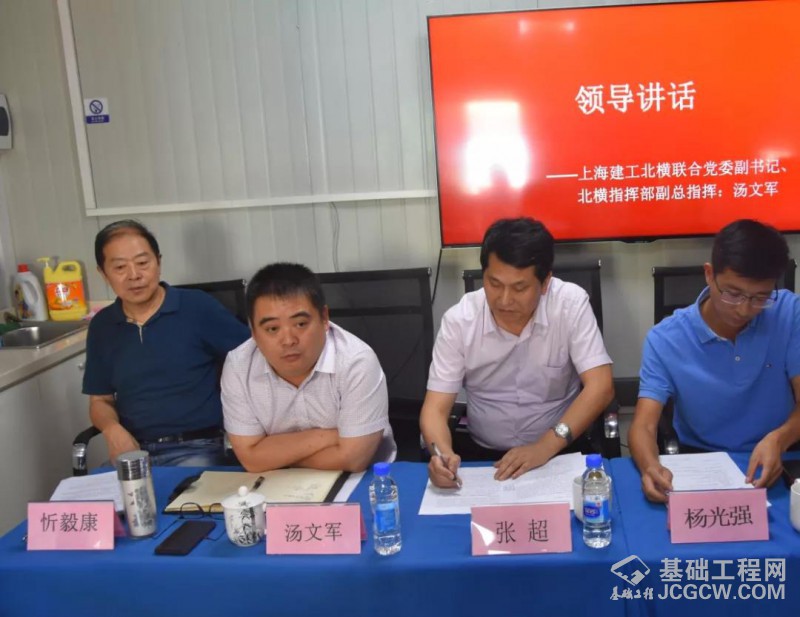 上海城投公路集团第三事业部第二现场指挥部副指挥杨光强、上海建工集团工会副主席张超、上海建工北横联合党委副书记、北横指挥部副总指挥汤文军、上海建工北横联合党委副书记忻毅康、上海建工基础集团副总裁、北横工程基础集团总指挥刘鸿鸣、上海建工基础集团党委书记助理、工会副主席余振栋等领导出席会议。会议由忻毅康主持。