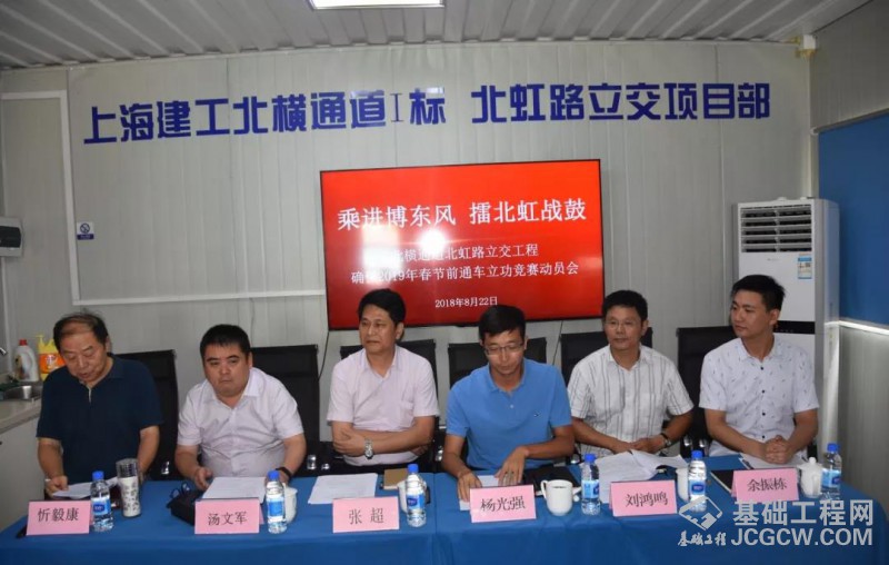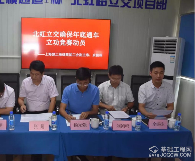 上海建工基础集团党委书记助理、工会副主席余振栋作立功竞赛竞赛动员报告,要求基础集团上下将高度关注北横工程进展,尽心服务北虹项目建设和管理,通过今天的动员会,必将鼓舞全体建设者干好工程的信心,确保春节前顺利通车。