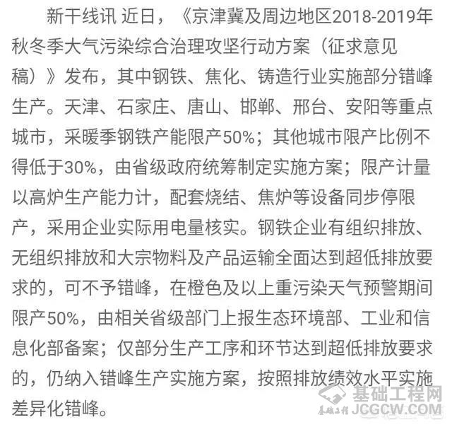 核心提示: 《京津冀及周边地区2018-2019年秋冬季大气污染综合治理攻坚行动方案》,这个方案中已经明确指出,从10月份开始,停工令就要来