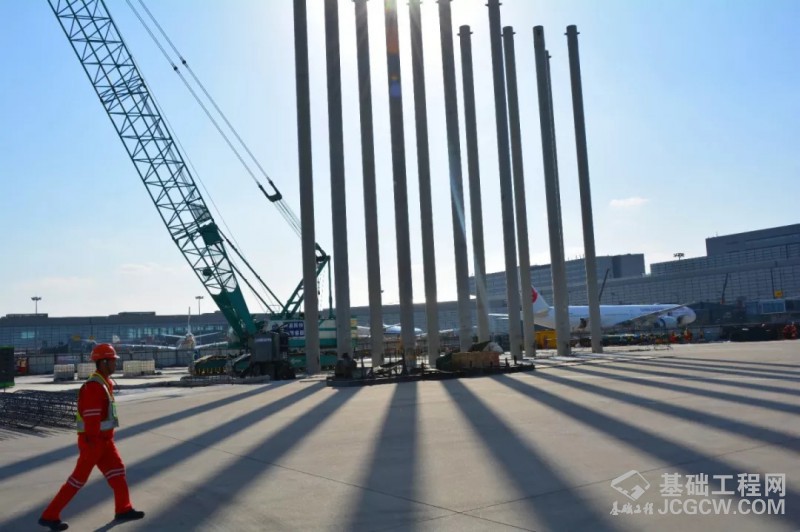 为了解决2号线虹桥机场停机坪段隧道结构安全问题,施工采用了全新的ICE液压免振锤桩基施工设备,仅用25天时间打入了138根钢管桩。